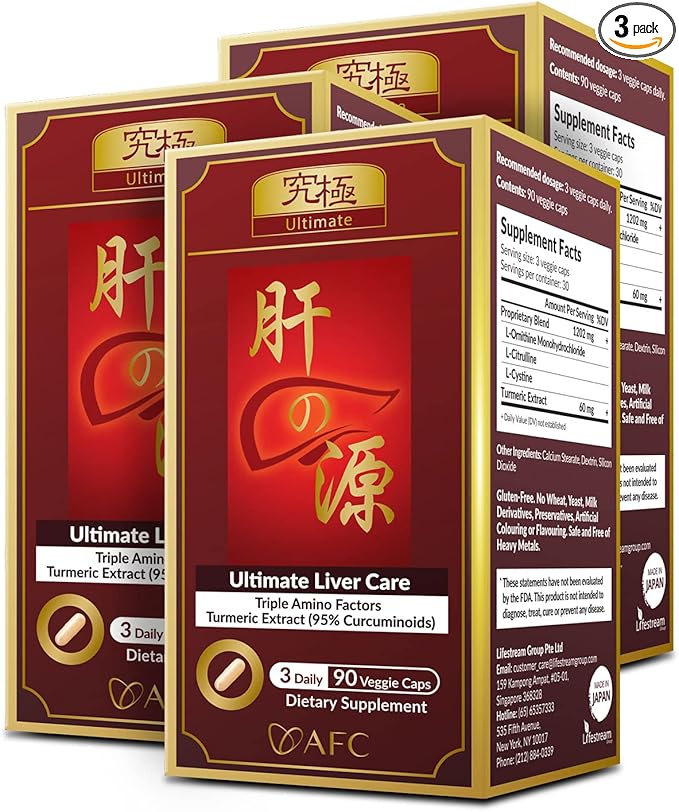 AFC Japan Ultimate Liver Care – Cleanse Detox Formula with Amino Acid L-Ornithine, L-Citrulline, L-Cystine, and Turmeric – Liver Health Support Supplement, 90 Veggie Capsules x 3