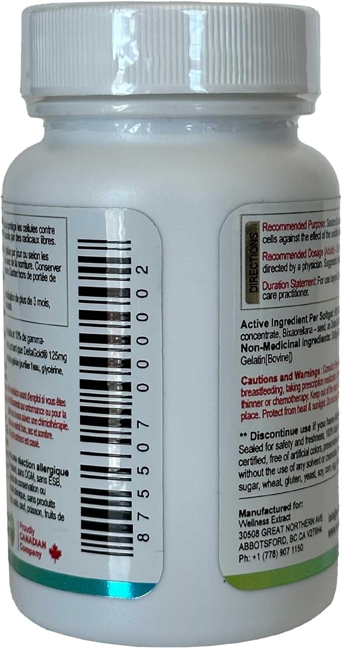 E Annatto Tocotrienols Deltagold 125mg, Vitamin E Tocotrienols Supplements 60 Softgel, Tocopherol Free, Supports Immune Health & Antioxidant Health (90% Delta & 10% Gamma) (Pack of 1)