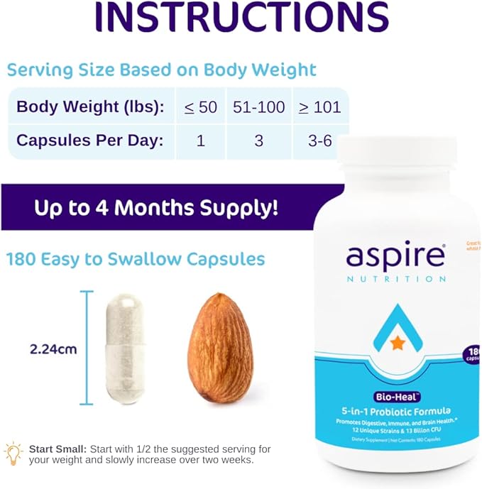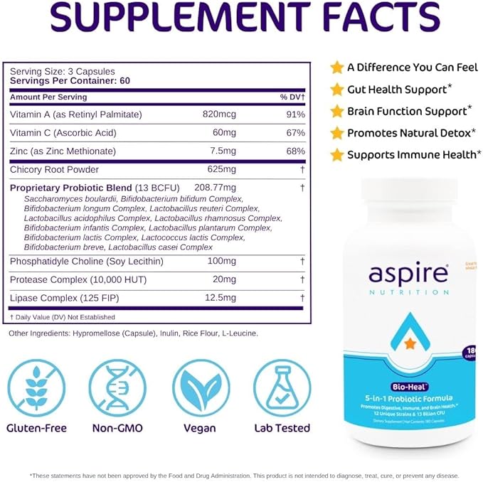 - 70% of your immune system is in your gut. Aspire Nutrition's Bio-Heal helps replenish beneficial bacteria to support immune health, digestive and intestinal health, gut health, and constipation.