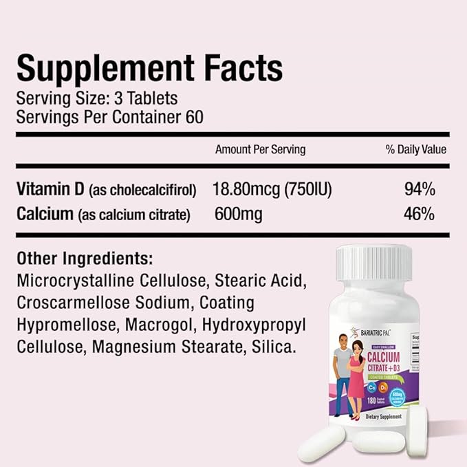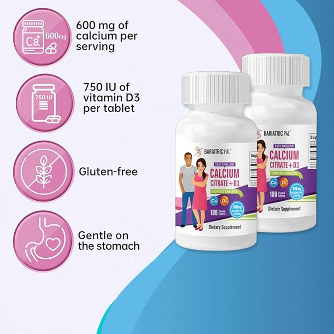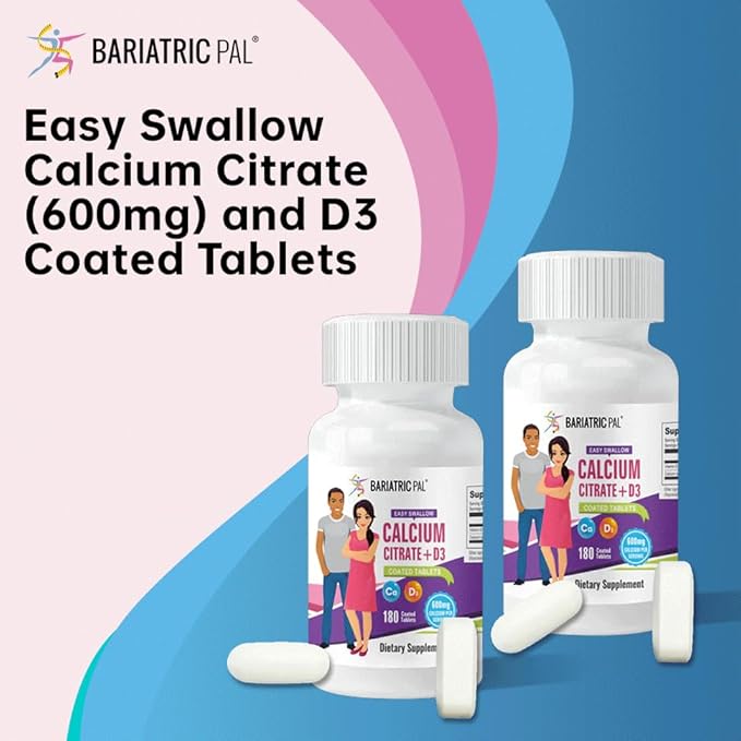 BariatricPal Easy Swallow Calcium Citrate (600mg) and D3 Coated Tablets (30-Day Supply)