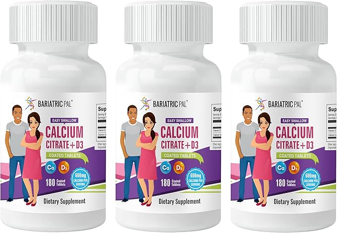BariatricPal Easy Swallow Calcium Citrate (600mg) and D3 Coated Tablets (90-Day Supply)