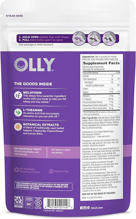 - OLLY SLEEP GUMMIES: Our Melatonin gummies, with L-Theanine and Botanical Extracts, work with your body to help you fall asleep and stay asleep*