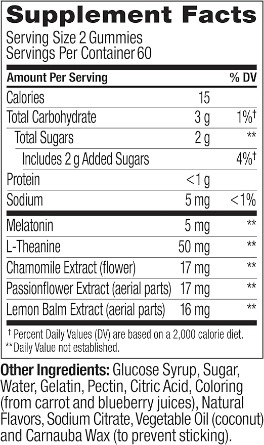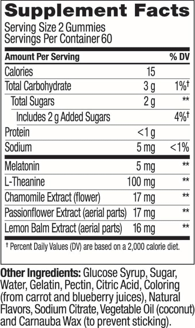 - Special Ingredients : Chamomile Extract, L-Theanine, Melatonin