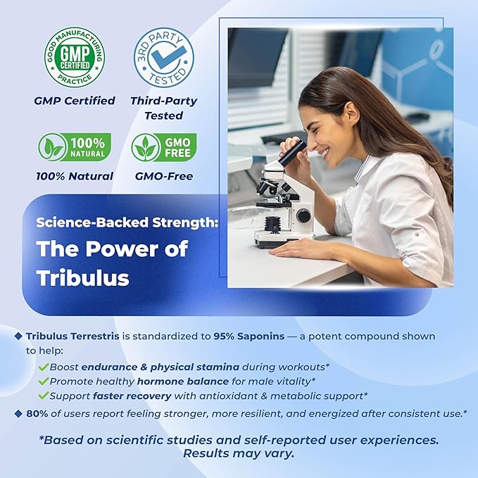 - Ultra Strength Formula – Each capsule features 800 mg of Tribulus Terrestris standardized to 95% saponins for maximum support.