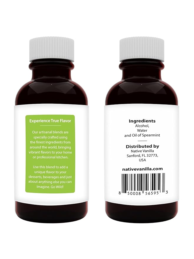 Native Vanilla - Pure Spearmint Extract - 4 Fl Oz - Pure Flavors and Extracts - Perfect for Cooking, Baking, and Dessert Crafting