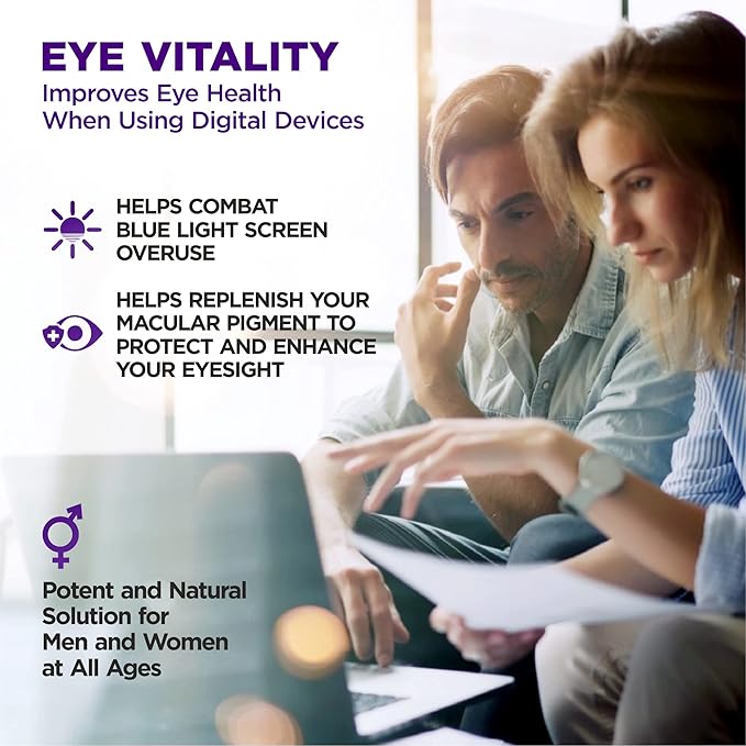 - Diminish Eye Strain and Fatigue – These eye health supplements for adults also support improving contrast sensitivity and reducing glare caused by computer, TV, smartphone, and tablet blue light which can impact visual performance and clarity.