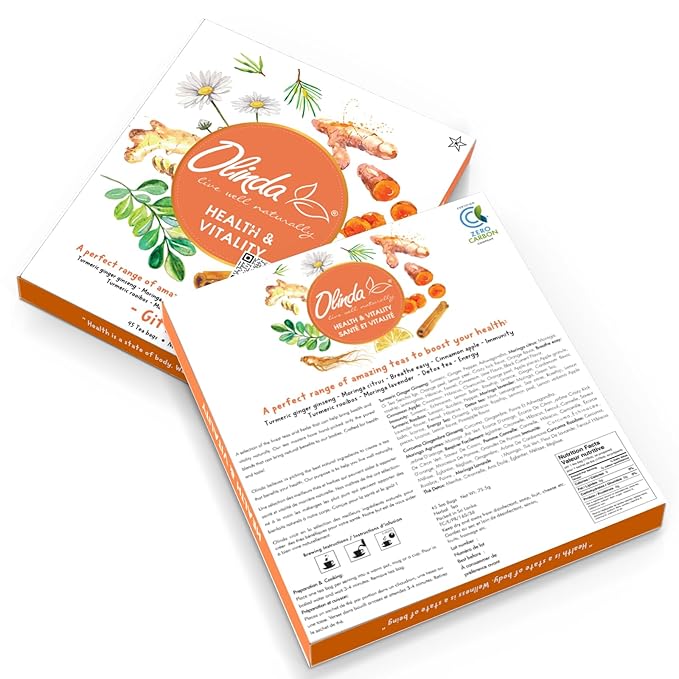 Olinda Health & Vitality Tea Gift Box Tea Samplers Organic Tea Bags Low Caffeine Detox Energy Tea Natural Herbal Gift Set Premium 9 Vareity Pack Individually Wrapped 45 Tea Bags 1 Tea Box Tea Gifts for Women