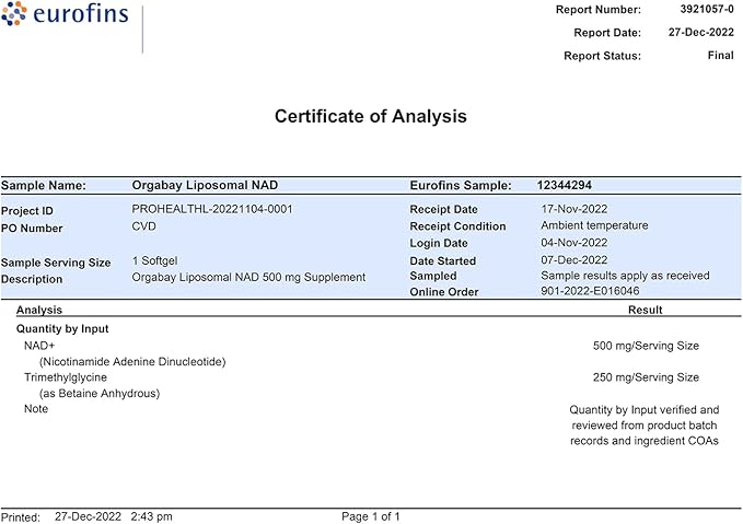 - High Dose, Powerful Formulas - We offer you 500 mg NAD+ plus 250 mg TMG per softgel while most NAD+ supplements just have low doses of 150 mg, 200 mg, 300 mg NAD+. Trimethylglycine (TMG) has been proved that it is a key factor in cell NAD+ production, helping maintain a healthy methylation cycle. We add 250 mg TMG to our liposomal NAD+ to ensure your good health.
