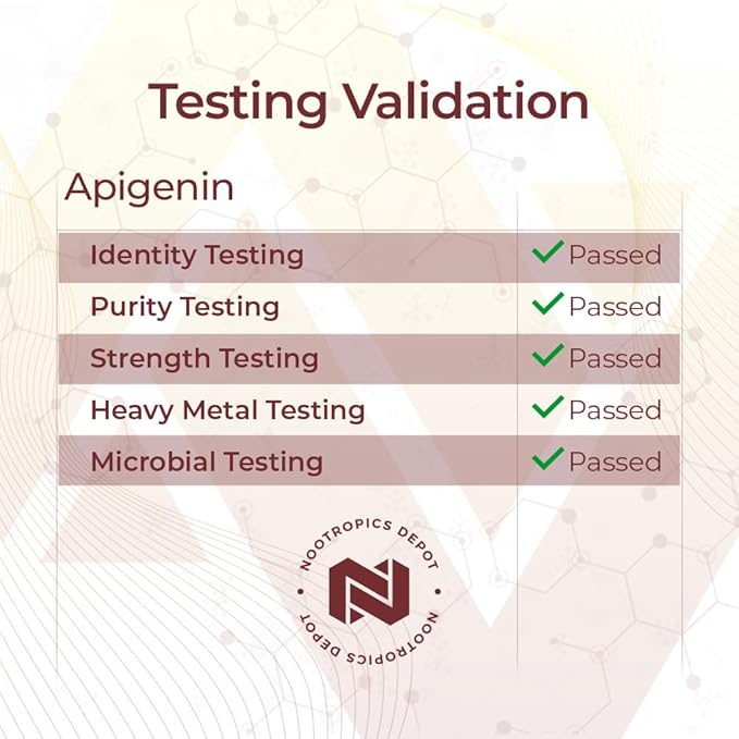 - PROMOTES MEMORY AND LEARNING - Apigenin has been researched and demonstrated to show an improvement in the areas of memory and learning by inhibiting the apoptosis of hippocampal memory cells.
