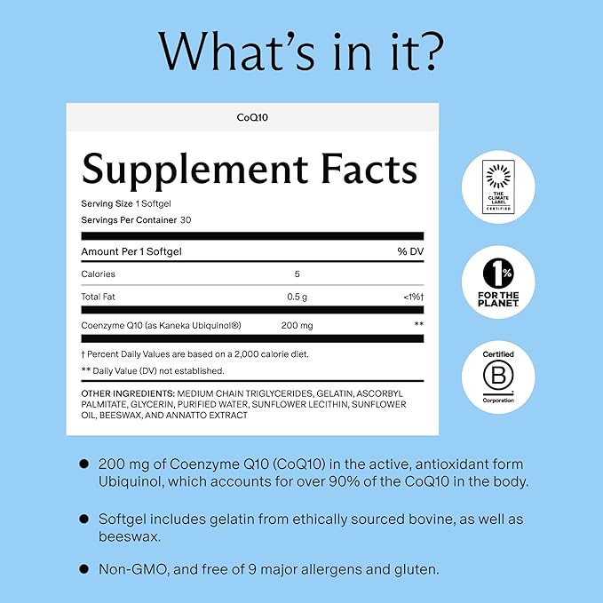 - ESSENTIAL FOR ENERGY PRODUCTION: Taking a Coenzyme Q10 supplement helps support natural CoQ10 levels that may decline due to aging.