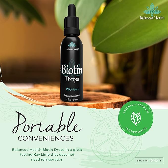 - DAILY SUPPORT - Balanced Health Biotin Drops is a great tasting Key Lime and does not need refrigeration which adds portable convenience. Biotin is one of the components necessary for rebuilding muscle strength and helping tissues grow. Balanced Health Biotin supports healthy hair growth, glowing skin, and stronger nails for both men and women.