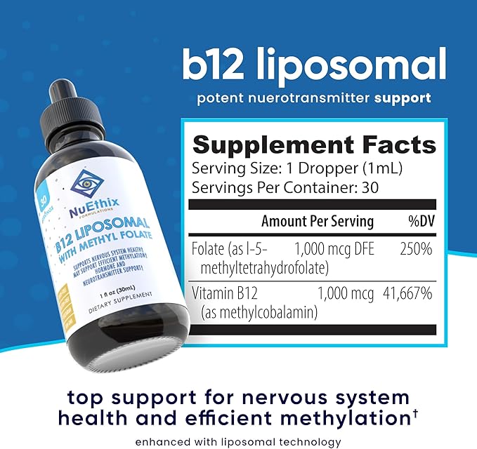 NuEthix Formulations B12 Liposomal with Methyl Folate Dietary Supplement, Bioactive B Vitamins to Support an Optimal Metabolism, 1 Fluid Ounce, 30 Servings