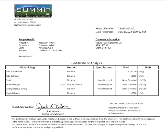 - Pure - Our potassium iodide tablets use USP grade Potassium iodide crystals directly from the source. We offer 3rd party lab tests that test for heavy metals, potency, purity, and much more.