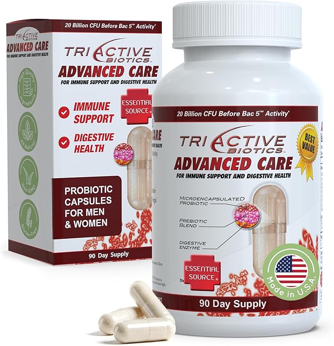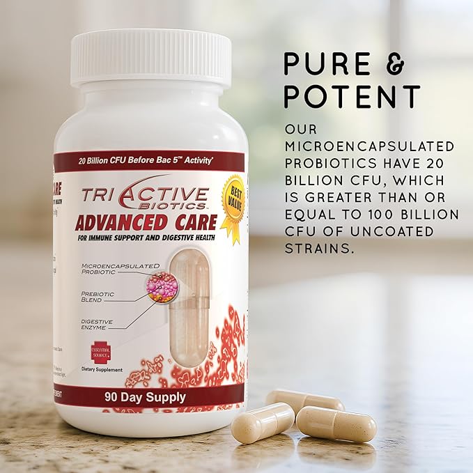 TriActive Biotics Advanced Care - 20 Billion CFU Probiotics for Digestive Health, Immune Support Supplement, Microencapsulated Probiotics for Women & Men, 90 Ct Capsules