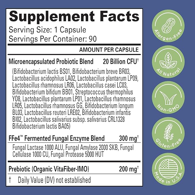 - Pure & Potent - Formulated with 4 digestive enzymes and 16 strains, our microencapsulated probiotics have 20 billion CFU, which is greater than or equal to 100 billion CFU of uncoated strains.