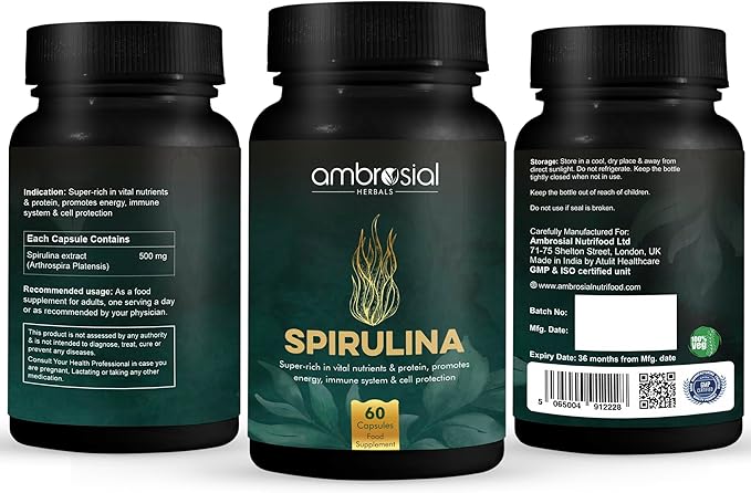 AMBROSIAL Spirulina Capsules 500 mg (Pack of 1-60 Capsules)