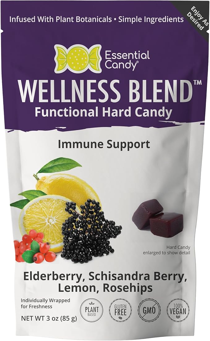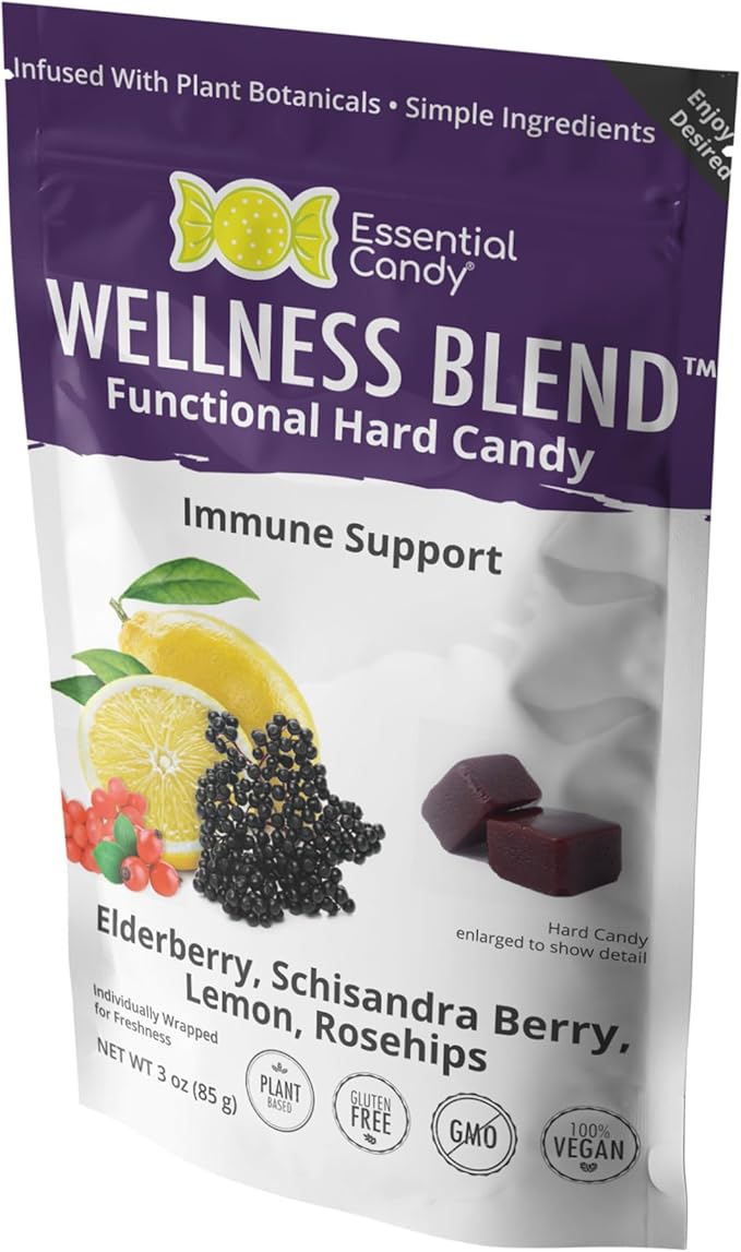 Wellness Blend Functional Hard Candy | Immune Health | Organic Elderberry, Schisandra Berry, Lemon, Rosehips | Gluten-Free, Non-GMO, Vegan - 24 Count (Pack of 1)