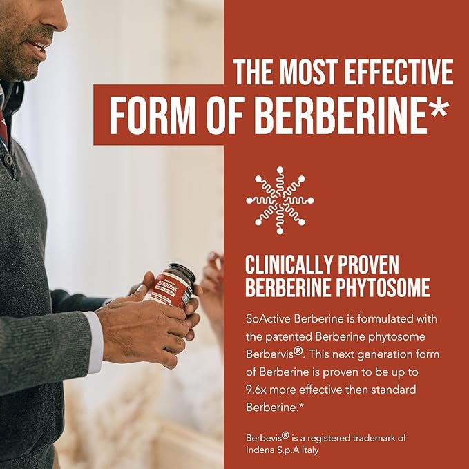 - THE MOST BIOLOGICALLY ACTIVE & EFFECTIVE FORM OF BERBERINE: SoActive Berberine is a Berberine phytosome that has been clinically shown to be optimally absorbed and utilized within the body. Standard Berberine cannot be broken down and absorbed by the body; SoActive Berberine has solved this absorption problem and delivers Berberine bioactives to the bloodstream for clinically proven results.