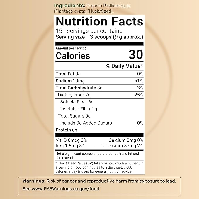 - Each serving offers 9,000mg of top-grade 95% pure organic psyllium, which is vegan-sourced, keto-friendly, and free of artificial colors, flavors, or additives. It comes in a 3lb bulk supply, providing 151 total servings.