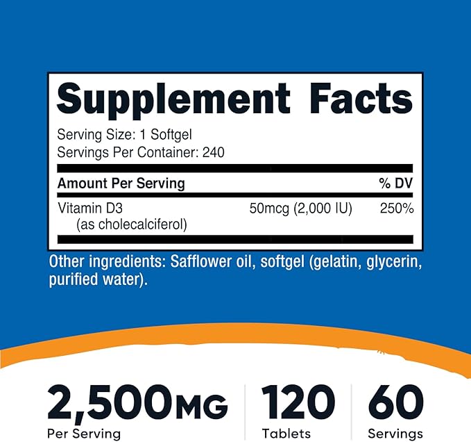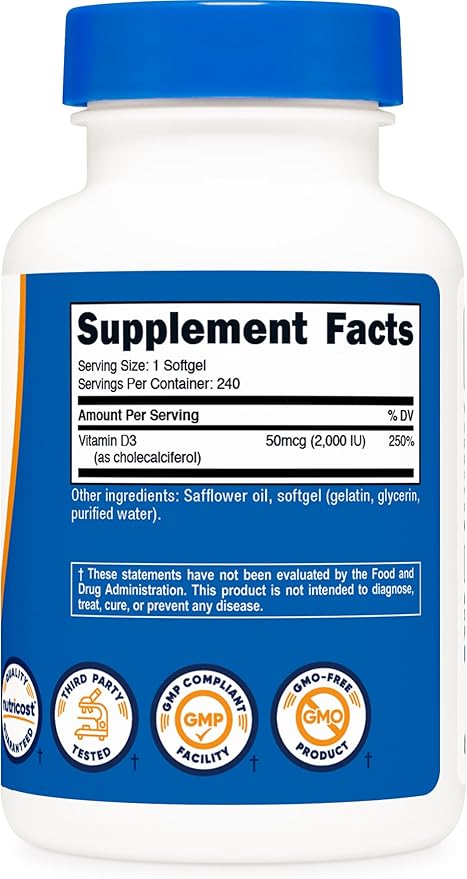 Nutricost Vitamin D3 2000 iu Softgels, 240 Softgels - Non-GMO & Gluten Free