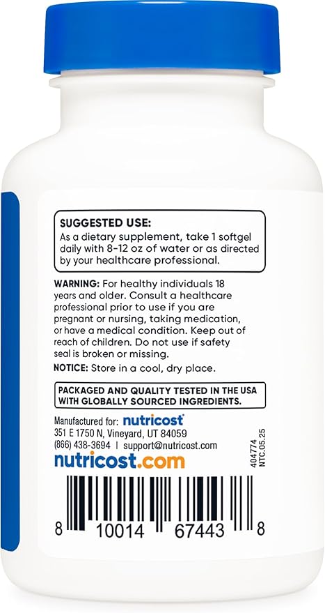 - 240 Softgels Per Bottle, 1 Softgel is 1 Serving