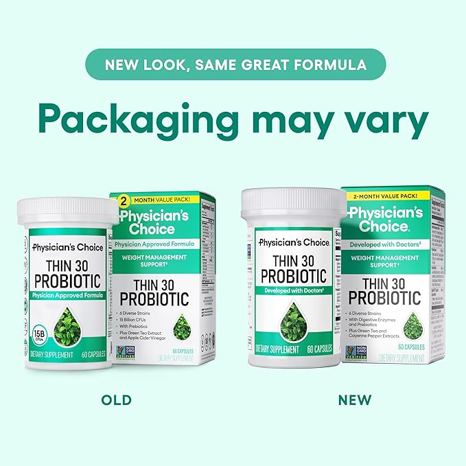Physician's CHOICE Probiotics for Weight Management & Bloating - 6 Probiotic Strains - Prebiotics - Key ingredient Cayenne - Supports Gut Health - Weight Management for Women & Men - Green Tea - 60 CT