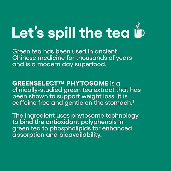 - Supports Weight Management: In a Clinical study, 100 patients lost an average of over 30 lbs. in 90 days taking 300 mg of stimulant-free Greenselect Phytosome daily with a reduced-calorie diet & exercise. Greenselect is a green tea caffeine free extract. Same great product you love, with a new look. Packaging May Vary!