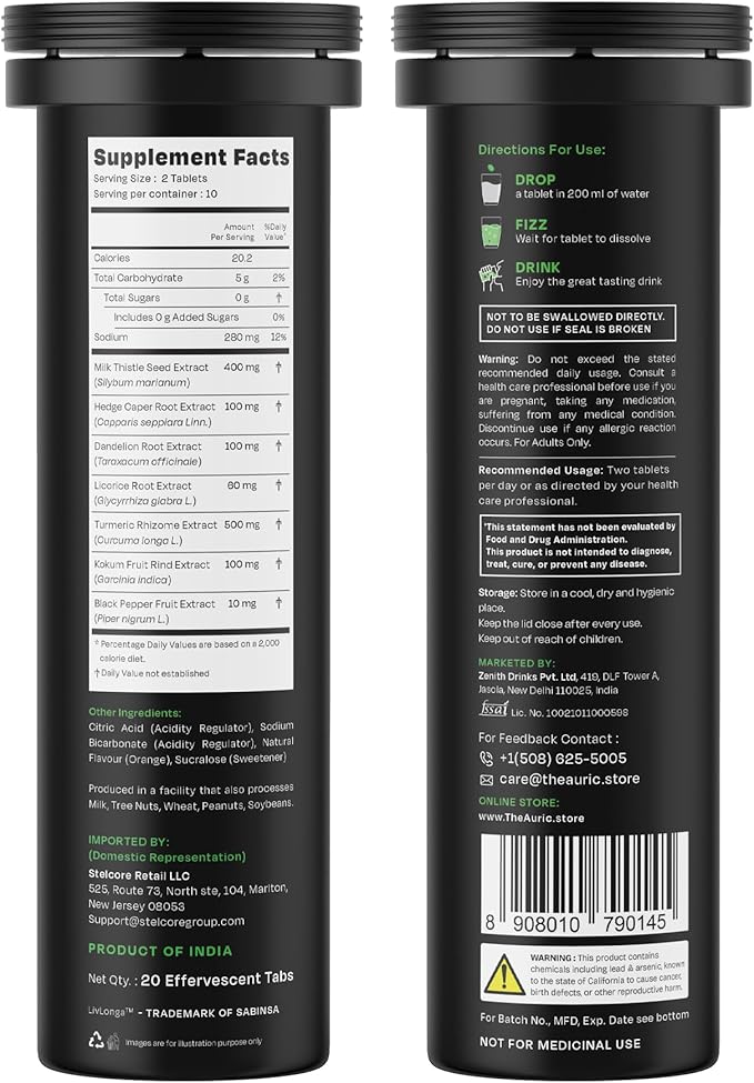 Auric Herbal Liver Support Supplement | Milk Thistle (Silymarin), Turmeric, Garlic, Ginger for Liver Health | Advanced Detox & Cleansing Formula for active Liver | 60 Tablets | Plant Based Gluten-Free