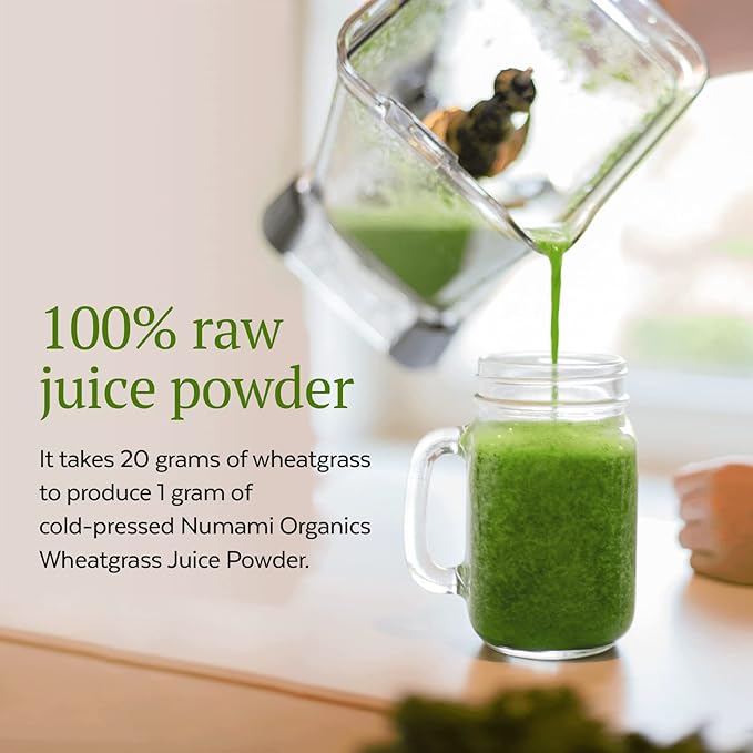 Numami Organic Wheatgrass Juice Powder - 100% Water Soluble, Grown in USA and USDA Certified Organic, 20 Times More Concentrated Than Raw Wheatgrass