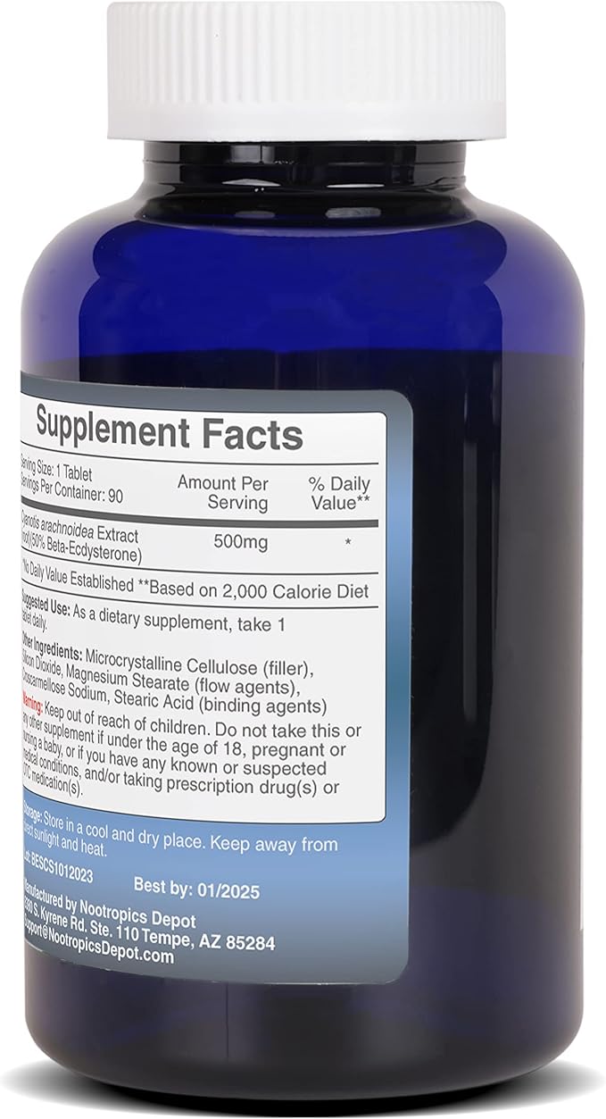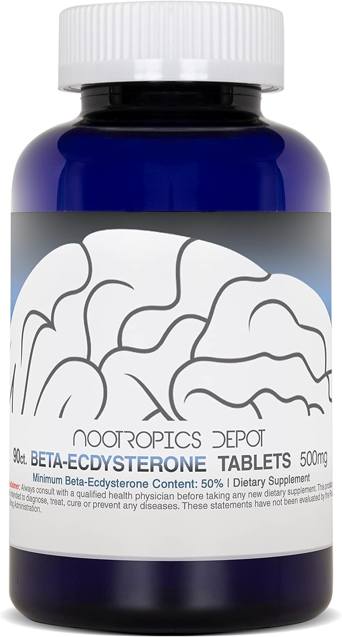 Nootropics Depot Beta Ecdysterone/20-Hydroxyecdysone 50% Tablets | 500mg | Cyanotis Arachnoidea Extract | Phytoecdysteroid | 90 Count