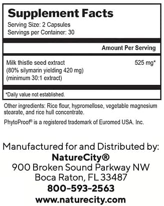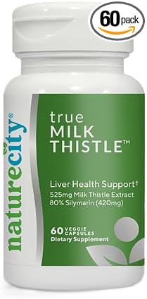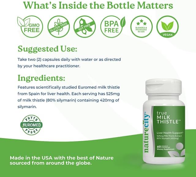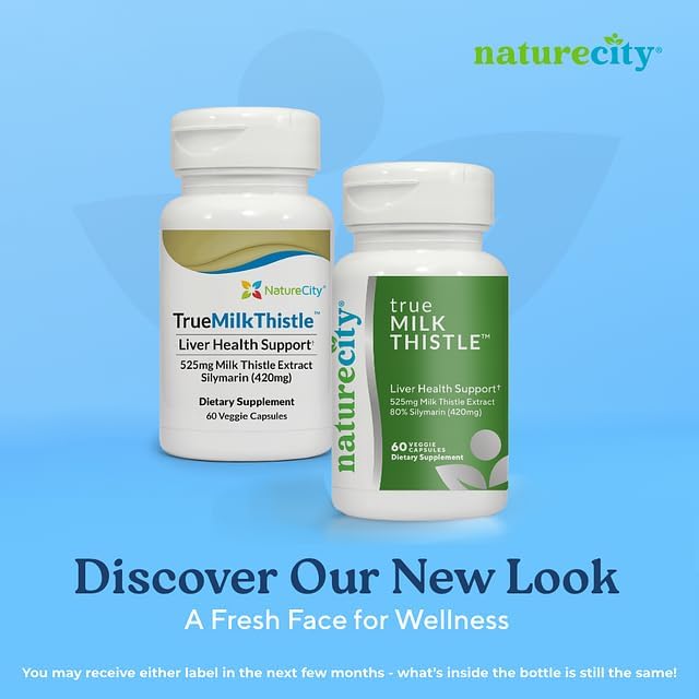 NatureCity TrueMilkThistle | Milk Thistle Supplement 525mg | Milk Thistle (80% silymarin) containing 420mg of Silymarin | Antioxidant Support | Liver Support Supplement | 60 Veggie Capsules