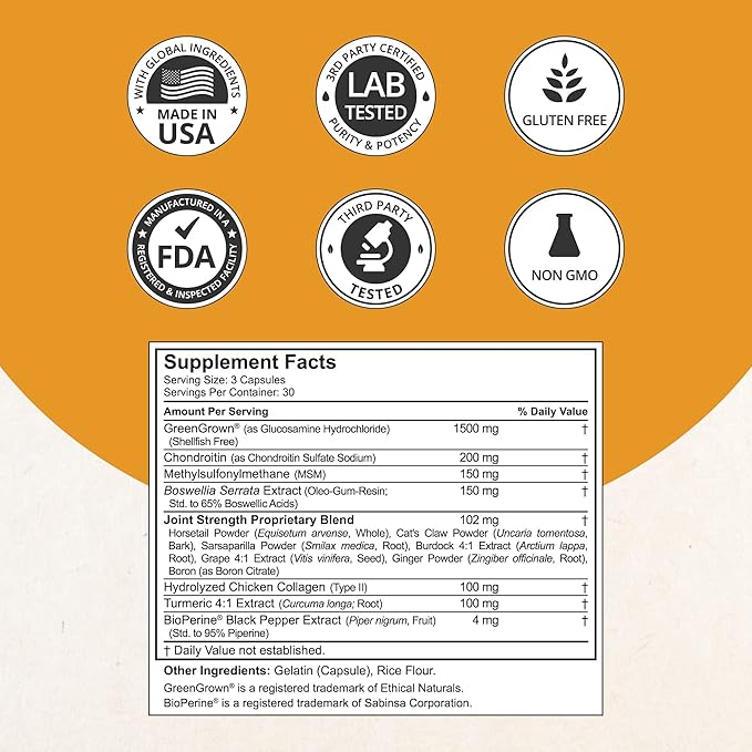 - Joint Support Supplement For Men & Women: Age and athletic deterioration of the joints might steal your once healthy, supple joints. Joint Xtra provides nutritional support for your cartilage and joints with the ultimate combination of key nutrients – Glucosamine, Chondroitin, MSM, Collagen, Turmeric and Boswellia. Added with a proprietary herbal blend to support mobility, strength, flexibility, and comfort of movement!