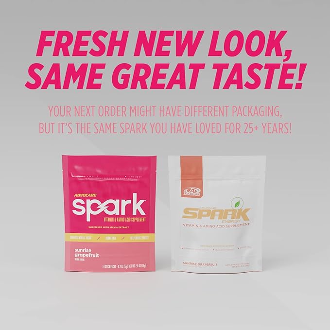 AdvoCare Spark Vitamin & Amino Acid Supplement - Sugar-Free Focus & Energy Drink Powder with Vitamins A, C, E & B-12 - Sunrise Grapefruit, 14 Stick Packs