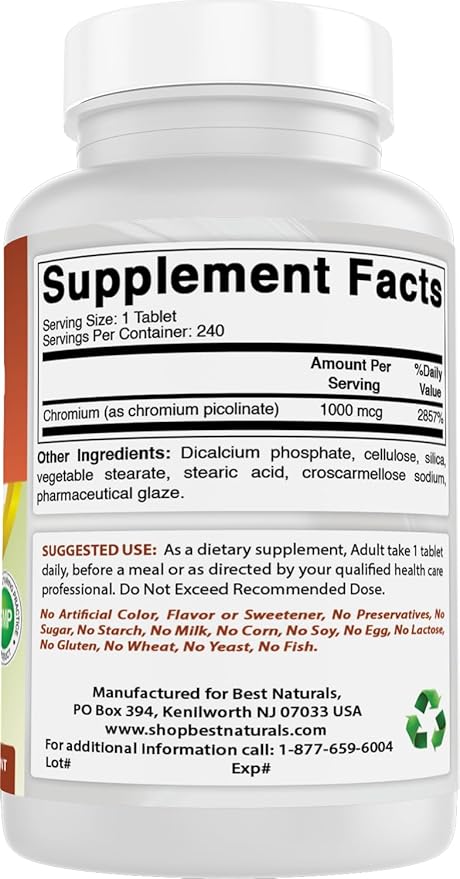 Best Naturals Chromium Picolinate 1000mcg 240 Tablets