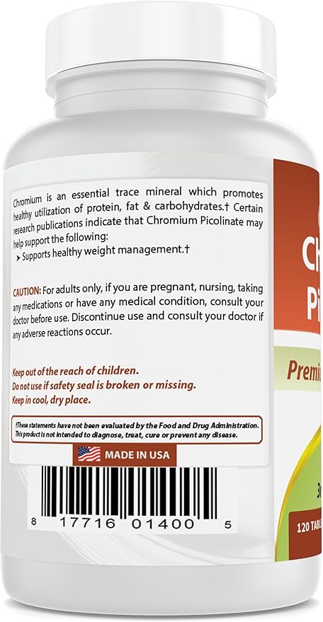 - 1000 mcg (1mg) of Chromium Picolinate per Tablet - 240 Tablets / Servings per bottle