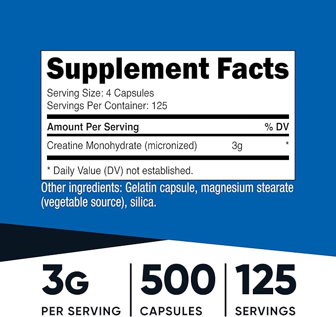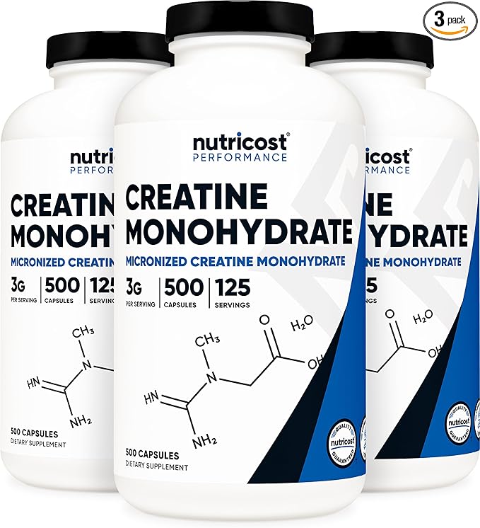 Nutricost Creatine Monohydrate 3000mg (750mg Per Cap), 500 Capsules (3 Bottles)