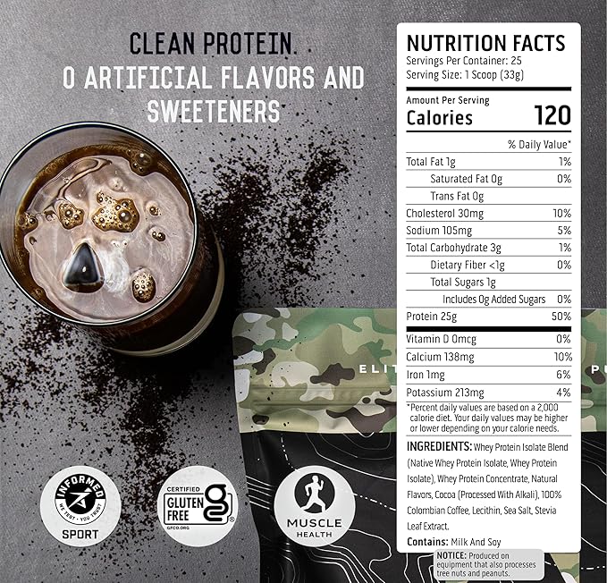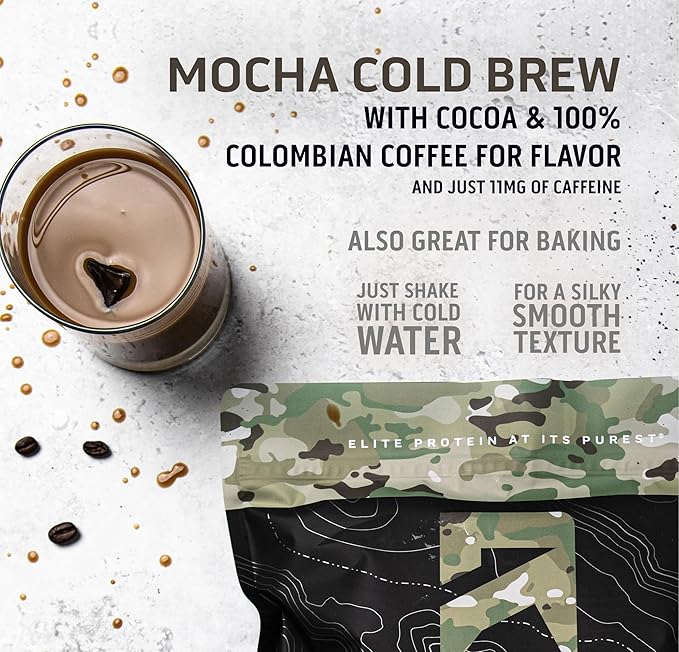 Ascent 100% Whey Protein Powder - Post Workout Whey Protein Isolate, Zero Artificial Flavors & Sweeteners, Gluten Free, 5.5g BCAA, 2.6g Leucine, Military Exclusive, Mocha Cold Brew 1.7 lb