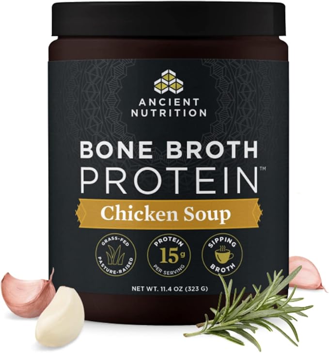 Ancient Nutrition Bone Broth Protein Powder, Chicken Soup, Grass-Fed Chicken and Beef Bone Broth Powder, 15g Protein Per Serving, Supports a Healthy Gut, 15 Servings