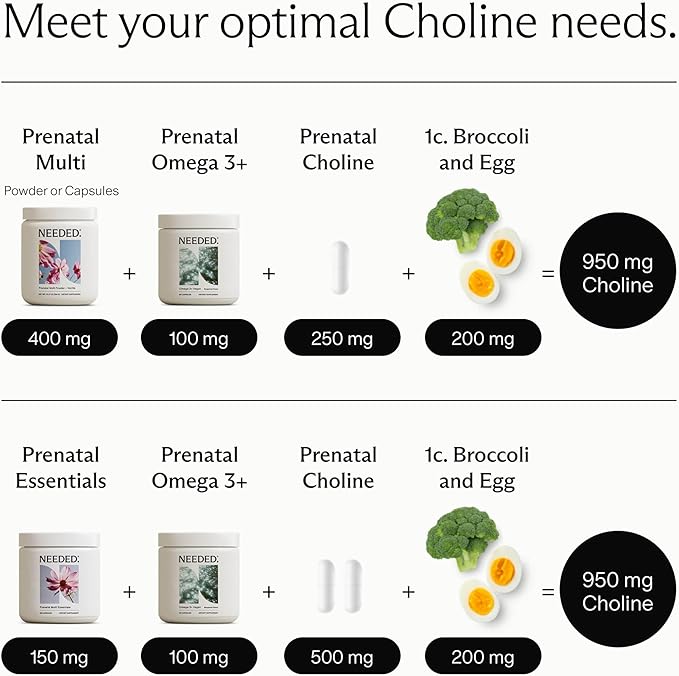 - ESSENTIAL FOR MOTHER’S HEALTH: Our prenatal choline supports healthy metabolism, and overall well-being during pregnancy. With up to 95% of mothers not meeting their Choline needs, this supplement is crucial for comprehensive prenatal health and meeting increased needs postpartum.