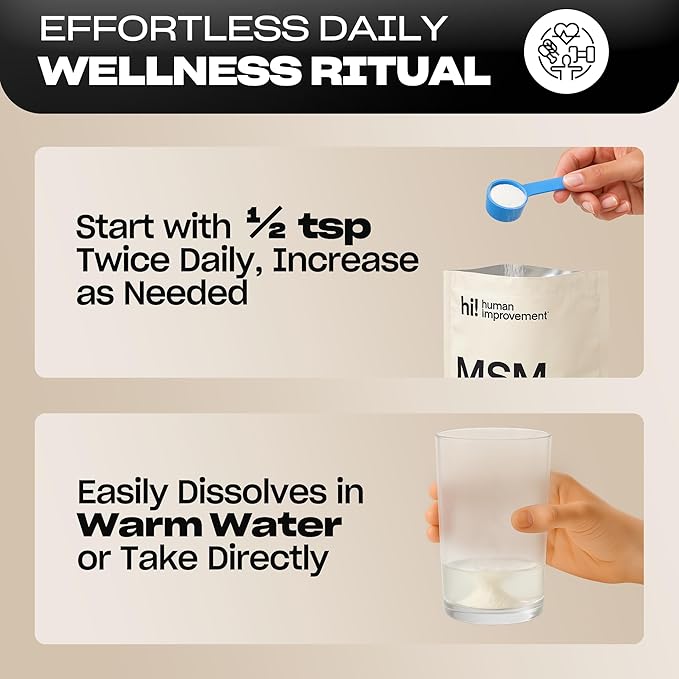 - MSM Cellular Detox: Support full-body cellular detox by increasing cell permeability, our pure MSM powder helps flush out toxins while delivering nutrients and oxygen deep into your cells—promoting better health and reducing inflammation, fatigue, and buildup over time.