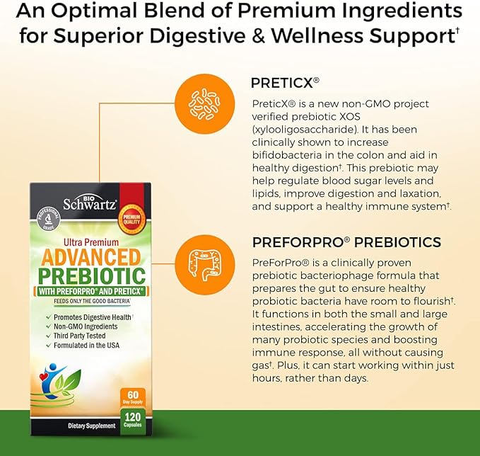 - Cutting Edge Prebiotic Supplement: Our prebiotic for women and men features a unique digestive support complex with organic rice bran and clinically studied PreticX PreforPro and vitamin C