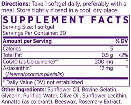 NAOMI Extra Strength Astaxanthin + CoQ10, Fat-Soluble Antioxidants, Cardiovascular Support, Increased Energy, Immune and Cognitive Function, Restore Depleted CoQ10, High Absorption, 30-Day Supply