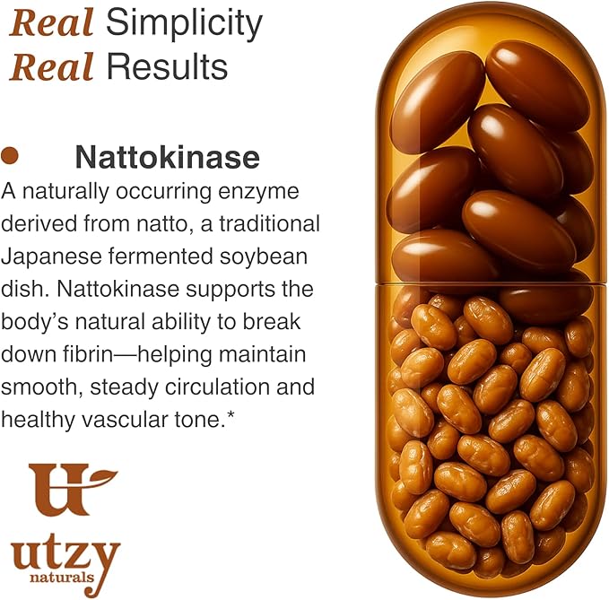 - Utzy Naturals’ Nattokinase is a natural enzyme that helps to support normal blood flow, circulation, and heart health.