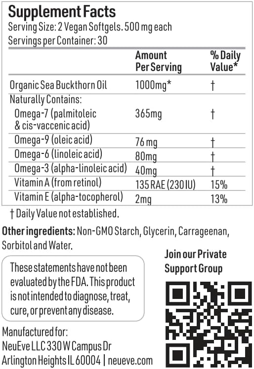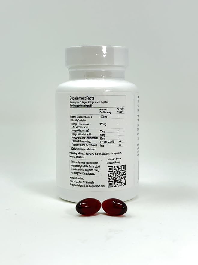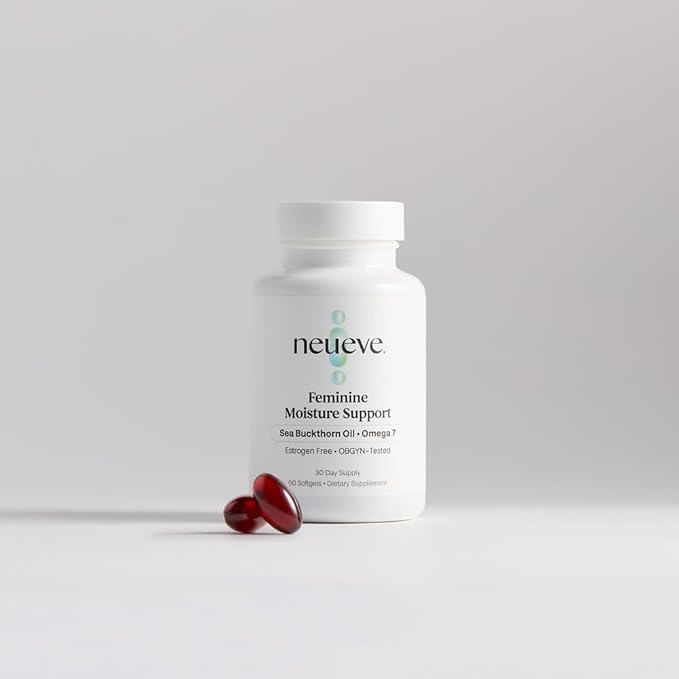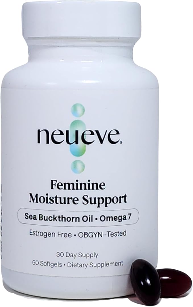 NeuEve Feminine Moisture Support Supplements with Sea Buckthorn Oil, Omega-7 for Vaginal Dryness, pH Balance & Moisture | 60 Vegan Softgels | 1-Month Supply
