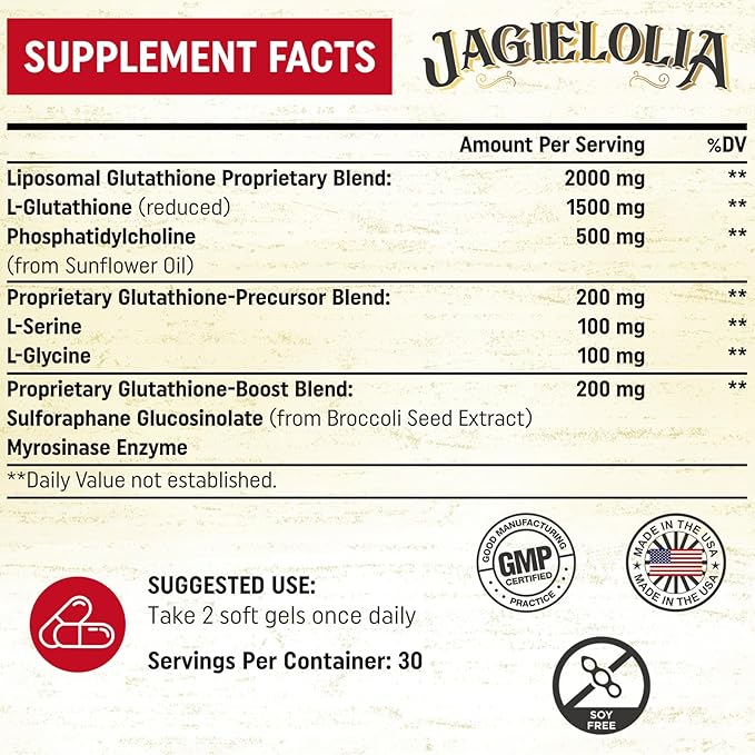 - HEALTHY AGING PROPERTIES: The antioxidant effects of glutathione protect the skin against oxidative damage. This prevents wrinkles and makes glutathione an excellent form of anti-aging skincare. Our Liposomal Glutathione soft gels can inhibit melanin synthesis which contributes to skin brightening effects!