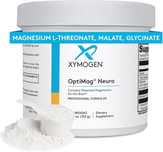 XYMOGEN OptiMag Neuro - Chelated Magnesium Powder - With Magnesium Glycinate & L-Threonate - Support Brain Health & Relaxation - Unflavored (60 Servings)