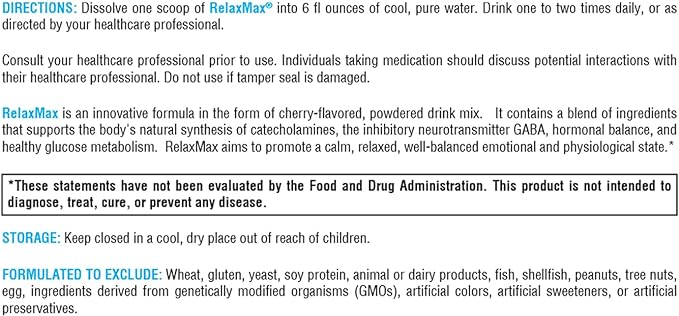 - RelaxMax aims to promote a calm, relaxed, well-balanced emotional and physiological state. Supports neurotransmitter balance and neuronal stabilization, both components of supporting brain health.*