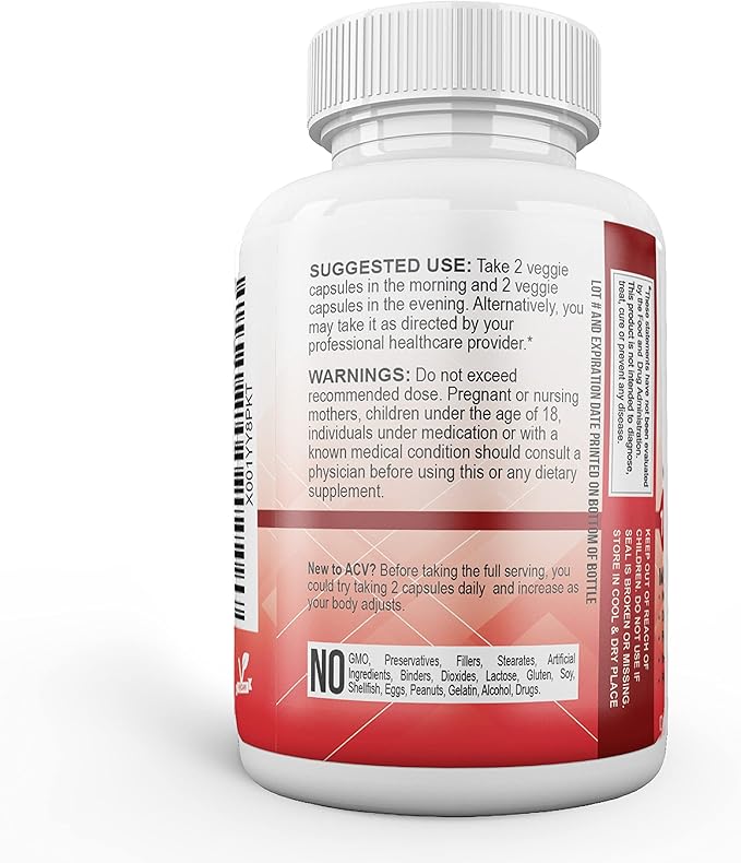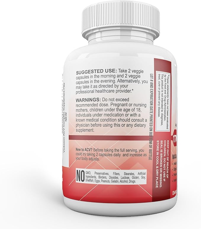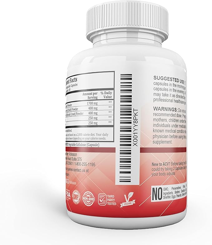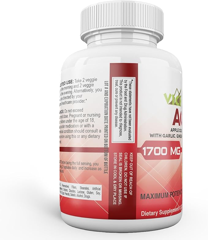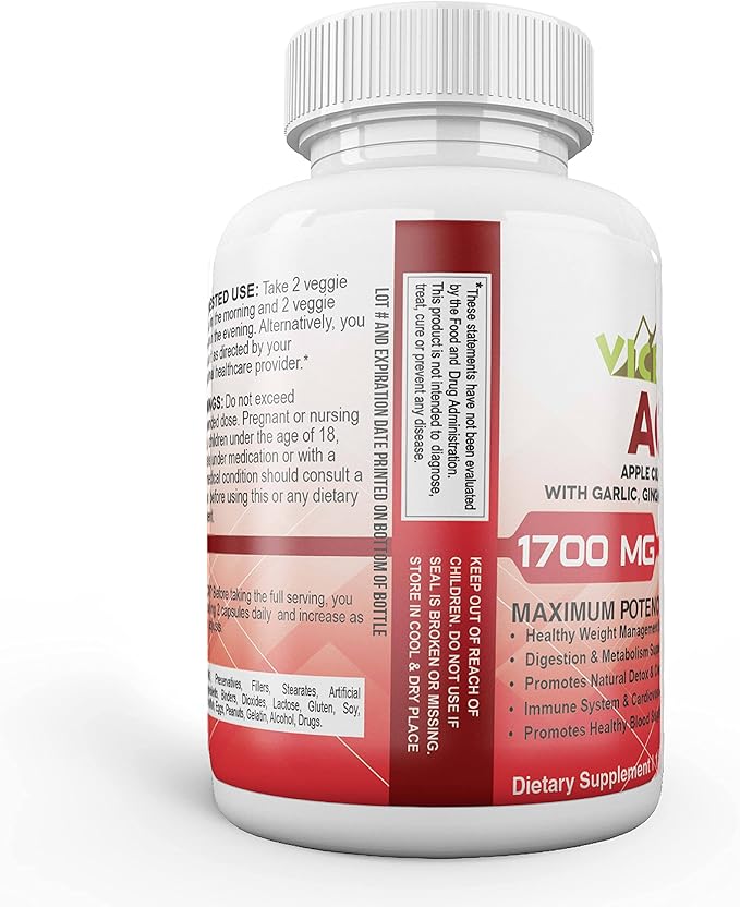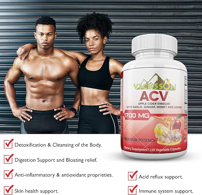 Vicksson Apple Cider Vinegar Pills 1700 mg of ACV with Garlic, Ginger, Lemon & Honey for Weight, Detox, Cleanse, Appetite, Bloating, Metabolism & Immune Support | 120 Capsules