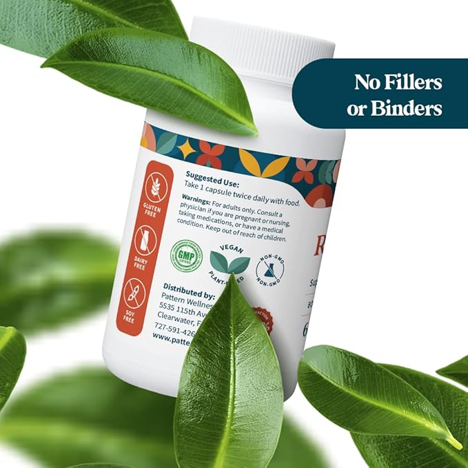 - SIMPLE, BASIC FORMULA - Pattern Wellness prides itself on providing natural, clean products without the use of fillers, binders, or preservatives. We’ve made a simple formula free from dairy, GMOs, gluten, and soy. Our high-potency formula is carefully crafted with 1200mg of premium Trans-resveratrol, the most biologically active form of resveratrol.*