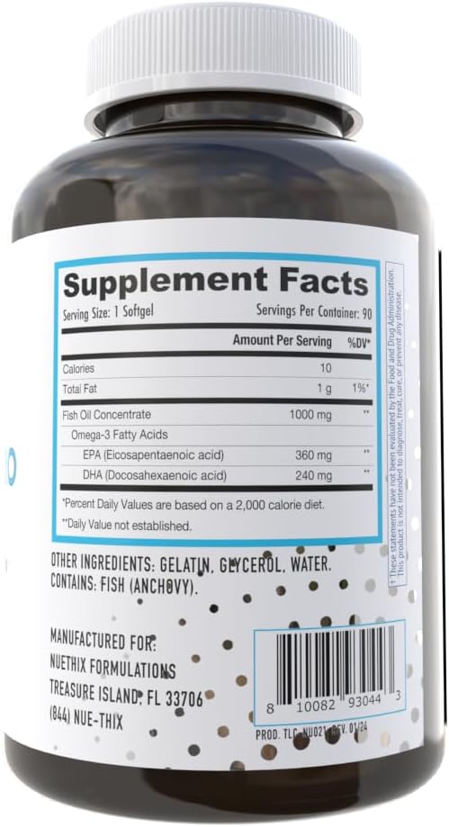 NuEthix Formulations Fatty Acids Pro EPA-DHA Fish Oil Dietary Supplement, Super Concentrated and Purified Fish Oil Blend for Optimal Wellness, 90 Gel Capsules